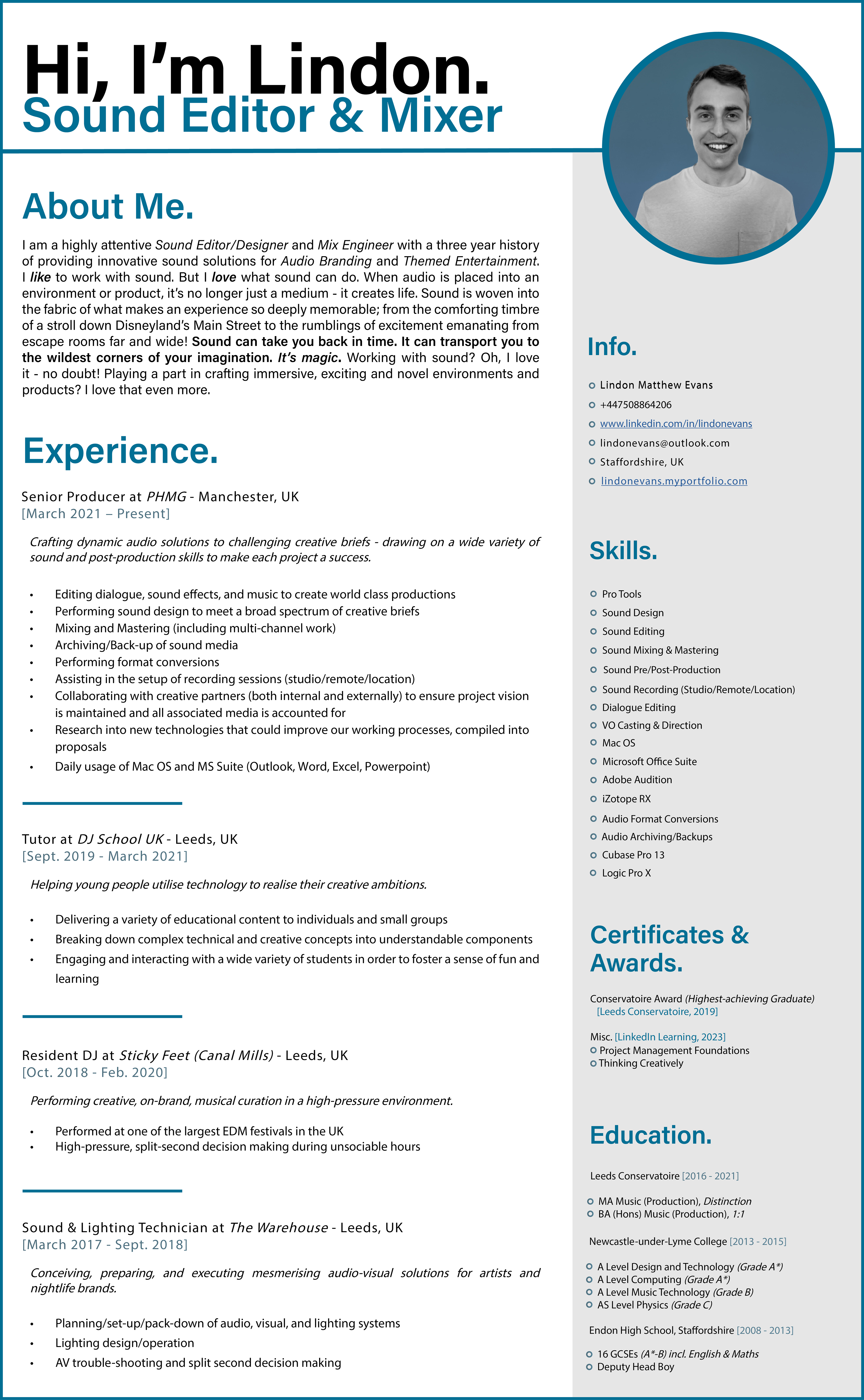 Lindon Evans - CV - Creative Producer